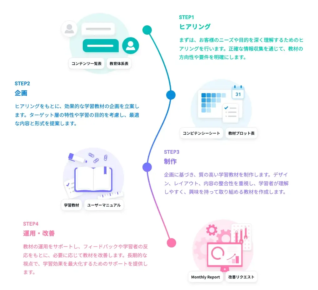 Workschoolは「一般的なコンテンツだと物足りないが、自分たちオリジナルで学習コンテンツを制作するリソースもない」企業を対象に、オンライン学習コンテンツの企画・撮影・制作までをワンストップで支援させていただいております!